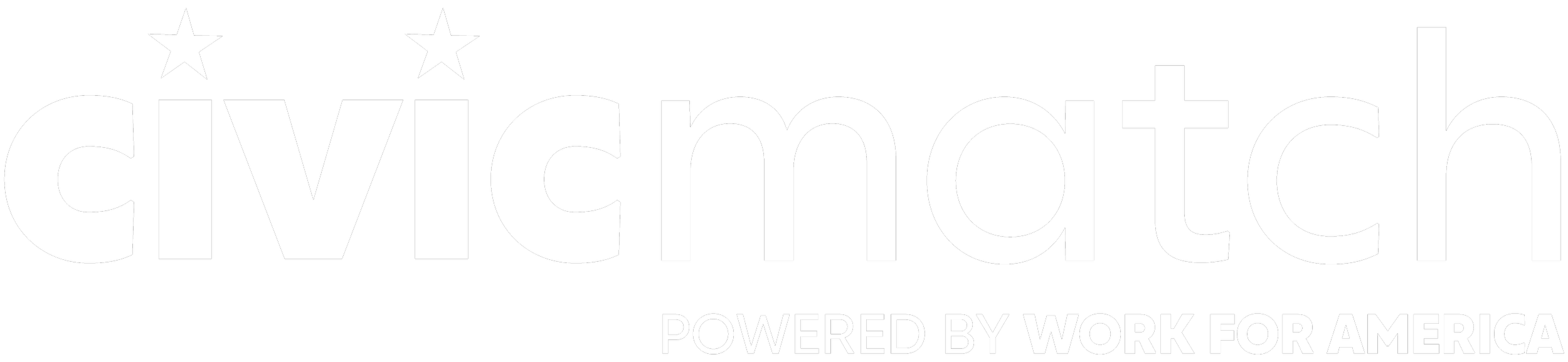 Civic Match is a project by Work For America, a nonprofit initiative tackling the government staffing crisis in communities nationwide. Work for America helps state and local governments recruit, retain, and empower the next wave of public servants, ensuring better services and a stronger America.